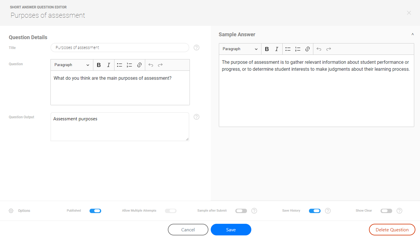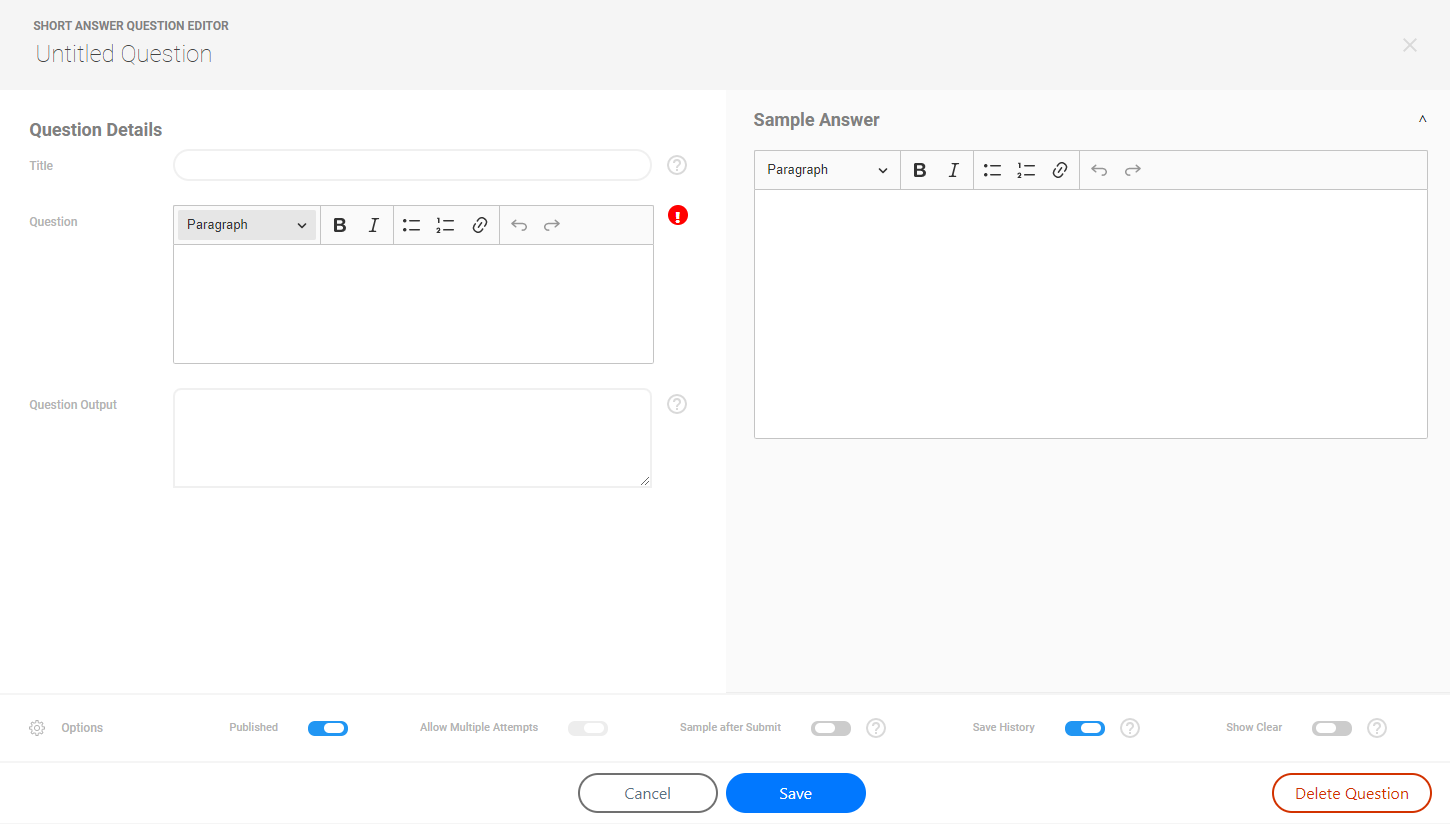 Step 3: Select "Short Answer" as question type will lead to a blank short answer question page.