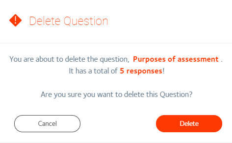 Please Note: Deleting a Question will immediately remove all Responses associated with the Question. Please ensure that you do not remove a Question if you believe that you may need the Question or the associated Responses in the future.