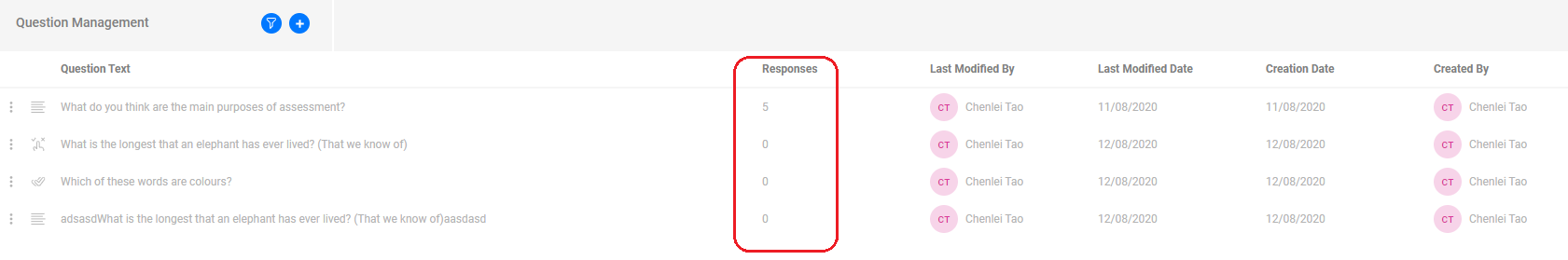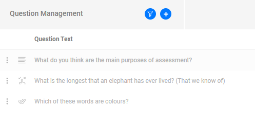 Step 1: Select the plus icon next to the "Question Management" heading.