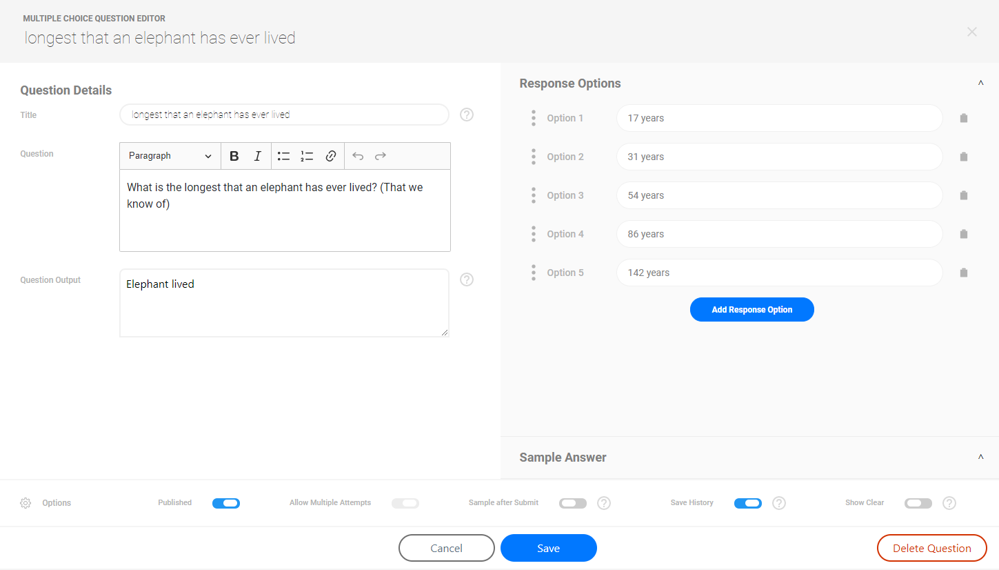 Step 4: Click Save button at the bottom after adding in the relevant question information.